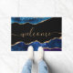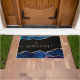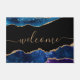 Saudações aos seus convidados em estilo com esta porta personalizada azul, roxa, preta e rosa com glitter de ouro personalizada com a saudação "bem-vinda" na caligrafia moderna faux rosa gold script.