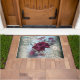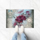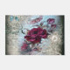 Amável, vintage, florais de rosa vermelha de jornal, apresentando um falso broche e colar de pérolas, gaiola de pássaros com arco para criar um luxo, extravagante, estilo chique para uma porta na moda.