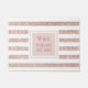 Tapete de entrada personalizado com iniciais elegantes monograma apresentando um padrão de faixa de brilho em rose gold com suas iniciais e sobrenome da família com a data estabelecida definida em um quadrado fronteiriço com tipografia clássica em rose gold. Concebido por Thisisnotme©
