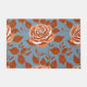 Rose Pattern With Warm Tones Of Orange And Rust On A Dusty Blue Background With An Autumn Inspired Cozy Feeling