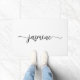 Tapete de Entrada Personalizado com Nome de Monograma Branco Limpo e Simples Minimalista Feminina. Este design apresenta seu primeiro nome em uma linda tipografia de letra manuscrita com cauda swash (ou caligrafia) em fundo branco. Ótimo presente feminino e elegante para aquecimento de casa, também para aniversário, casamento, chá de noiva, aniversário de casamento, despedida de solteira e É para a garota que gosta de coisas minimalistas limpas.