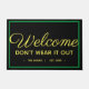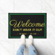 Dar boas-vindas calorosas e engraçadas aos seus convidados com este tapete personalizado de boas-vindas. As cores amarela, preta e verde ajudam a criar uma Rua sutil. O tema Dia dos Patrícios que é capaz de ser exibido através do primavera. Design tem uma aparência de um simples tapete de boas-vindas até uma leitura atenta. A mensagem desencoraja os hóspedes a sobreviverem à sua visita. As palavras "bem-vindos não vistam" com o nome da família e a data final. A design apresenta caracteres amarelos caligráficos e modernos em fundo preto. Uma fronteira verde encontra as letras no tapete. Design por © Ms_Jade. Compre outros designs divertidos na minha loja Zazzle em www.zazzle.com/Ms_Jade*