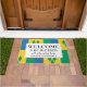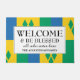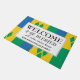 Porta de boas-vindas da família VINCENT da rua com TEXTO PERSONALIZÁVEL. Na moda, patriota WELCOME Doormat com a menção WELCOME & BE BLESSED ALL OMS ENTER AQUI mais placeholder name (BEM-VINDO e BEM-VINDO BEM-VINDO). O fundo é a bandeira da RUA VINCENT & THE GRENADINES em um padrão de tiled de tamanho total. Todo o texto é PERSONALIZÁVEL para que você possa alterar o texto de acordo com suas necessidades, por exemplo, adicionar nome da família, lema da família, citação inspiradora.