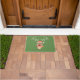 Rudolph, a rena ruidosa vermelha com pequenas bolinhas brancas sobre um fundo verde-musgo.