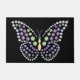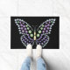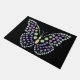 Borracha da Borboleta Rhinestone, enrolada em verde roxo e em diamantes de rocha branca. Bem-vinda borboleta Sparkly bling Mat Home Decor. Joias de várias cores desenhadas à mão que decoram uma forma de borboleta num fundo preto. Porta frontal ou traseira ou tapete de cozinha, Personalize seu texto, cor, estilo no tapete de borboleta joalhada para corresponder ao seu gosto. Nota: as rochas não são reais, isto é, o design de joia desenhada à mão sobre as borboletas.