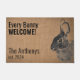 Este simples, mínimo e rústico tapete de boas-vindas do coelho negro é uma maneira fácil de cumprimentar todos que vêm para sua casa ou negócio! As palavras "Cada Coelhinha Bem-vindo", seu sobrenome ou nome comercial, e a data estabelecida são todos personalizáveis para seu gosto. Perfeito para a primavera, este tapete fornece aos convidados ou clientes na sua entrada um acolhimento amigável com seu design único e encantador. **Nota importante: Este tapete destina-se à entrada de dentro ou a uma zona coberta de varanda ou pátio. Para um tapete exterior mais resistente, por favor encontre o tapete "coir" também disponível na minha loja: https://www.zazzle.com/rustic_modern_black_bunny_rabbit_outdoor_mat-256325452800019382 . Este selo foi criado da minha fotografia natural de um coelho que visitava frequentemente o meu quintal no ano passado! Ficamos felizes em recebê-lo ao nosso jardim. Foto de Amanda Renee, CtrlZ Digital Designs 2023