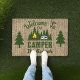 Bem-vindo à tipografia do nosso Camper com o seu nome familiar com um campista na floresta. O fundo é uma pá para uma sensação rústica.