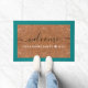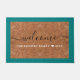 Tapete Rustic Coir Welcome Family Name Teal Outdoor