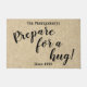 Bem-vindos aos seus convidados com esta divertida mensagem de tipografia tipografia, o tapete de porta rústica, personalizado com um nome e um ano estabelecidos, além da mensagem "Preparar para um abraço". Preencha os campos de texto com um nome de família, remova o nome ou clique em personalizar para selecionar um estilo de fonte, tamanho e cor preferidos.