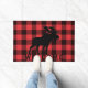 Tapete Rustic Walking Moose Red Black Xadrez Bem-vindo