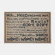 Esta design de porta minimalista foi projetada especialmente para você se você aprecia uma entrada moderna, na moda, com personalidade, sabedoria e humor. Combina a tipografia lúdica, atraente e amorosa em cores personalizáveis com o endereço direto e viscoso para os convidados de Fred Mat. O texto de "Fred the Mat" é dirigido diretamente aos seus visitantes e ao espectador da porta. Os textos e as expressões de Fred Mat são atrevidos, humorísticos, cheio de insinuações e, ao mesmo tempo, têm uma mensagem importante: "Tire seus calçados" ou "pelo menos limpe-os". A atenção dos seus convidados e os sorrisos estão garantidos. Divirta-se com Fred Mat. Para uma declaração encantadora à sua porta.