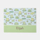 Um padrão bonito de sapos, libélulas, lírios, cattail e outras plantas, elementos encontrados em uma lagoa. Personalize com o nome da criança para fazer uma adorável porta personalizada para o quarto para o pequeno.