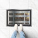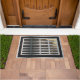 Doormat Novelty do Halloween do Assustador. Um demônio assustador com olhos vermelhos, escondido abaixo de uma grade de calçada.