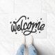 Tapete Script de boas-vindas manuscrito preto e branco