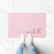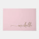 Tapete de Entrada Personalizado Feminino Elegante Minimalista Moderno com Nome em Script de Monograma a Ouro Rosa Bege. Apresentando o primeiro nome em uma linda caligrafia com cauda swash (ou tipografia) em ouro sobre um fundo rosa bege ou rosa bebê. Ótimo presente feminino e elegante para aquecimento de casa, também para aniversário, aniversário de casamento, chá de noiva, casamento, despedida de solteira e É para a garota que gosta de coisas minimalistas limpas.