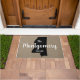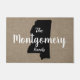 A mão clássica escreveu o nome da família na porta preta com um fundo falso de burlap e o estado preto da silhueta do Alabama em branco.