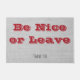 Uma mensagem engraçada, mas sincera, que provavelmente chamará sua atenção. "Seja gentil ou deixe" em caracteres negros em fundo de buracos de cinza