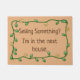 Selling Something? I'm in the next house. Funny Personalized Doormat or Rug features a border of a green vine with six small yellow flowers with orange centers. Inside the border are the sarcastic words "Selling something? I'm in the next house.." on a tan background. You probably have few if any people trying to sell you something, but guests will stop, laugh, and shake their heads; Strangers may think twice. Personalize this humorous doormat by changing the background color, the border, or changing or adding text, such as your name, or images to make it uniquely yours, or use as is. See more decor and accessories for your home, office, vehicle, or other activities in our store at zazzle.com/DIYDecor, where everything is customizable.