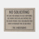 Este design engraçado de tapete de porta apresenta as palavras "Sem Pedidos Indesejados Estamos Muito Falidos Para Comprar Qualquer Coisa Sabemos Em Quem Vamos Votar Encontramos Jesus Então A Menos Que Você Tenha Um Pacote Para Nós Afaste-se". Personalize este tapete de porta rústico e fofo de juta falsa com o nome da sua família e saudação personalizada. O presente perfeito e único para aquecimento de casa ou novos proprietários.