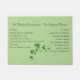 A Oração da Serenidade apareceu lado a lado em irlandês/gaélico e inglês. Texto preto sobre fundo verde com pequeno spray de chamas