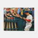 Artista: John Falter | Jogador de beisebol dando autógrafos antes de um jogo.