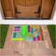 Esta porta tem um design de setas em várias cores com diferentes padrões.