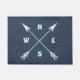 Ilustração de compasso com setas e decoração norte, leste, sul e oeste sobre fundo azul-verde