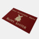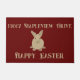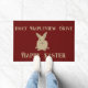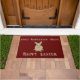 Coelho bonito em uma porta branca com seu endereço. Ajude esses drivers a soltar o pacote na varanda correta. Pegue um para seus vizinhos também! Bem-vindos aos convidados da primavera.