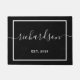 Esta porta simples e na moda apresenta seu sobrenome em um roteiro manuscrito, juntamente com o ano em que sua família foi estabelecida e um quadro geométrico branco moderno em um fundo preto.
