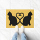 Uma silhueta negra de dois gatos. Suas cortinas idênticas se juntam para formar um coração. Personalize a cor de fundo para corresponder ao seu gosto.