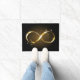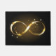 Símbolo infinito de joias Dourado com estrelas douradas sobre fundo preto. Design com estrela dourada.
