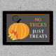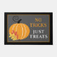 Receba os convidados e as crianças que pedem doces com este tapete de entrada personalizável de Halloween. Com uma ilustração simples de uma abóbora, folhas coloridas de outono, bolotas e texto personalizável que diz “Sem Truques, Apenas Guloseimas”, este tapete de entrada é perfeito para adicionar um toque pessoal à sua decoração de Halloween. Adicione o nome da sua família ou seu próprio texto personalizado para criar um tapete de boas-vindas único para receber amigos, familiares e crianças que pedem doces com estilo.