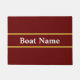 Esta porta vermelha escura tem texto branco no meio. Você pode editar o texto para mostrar o nome do seu barco. As listras de ouro falsas não são feitas de folha.
