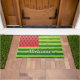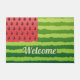 Bandeira de melancia vermelha e verde com listras e sementes.