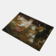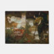 This design features a painting by the Victorian-era British artist Edward Frederick Brewtnall (1846–1902). It is a richly detailed Pre-Raphaelite-influenced painting that illustrates a key moment from the classic fairy tale: the princess lying in her enchanted sleep, surrounded by layers of wild roses that have grown over the palace during her hundred-year slumber. The roses add both beauty and danger to the scene: delicate blossoms contrast with the sharp thorns, symbolizing the enchantment’s mixture of protection and peril. Their encroachment also heightens the sense of isolation, as if the outside world has vanished behind a barrier of living bramble. Sleeping Beauty lies gracefully on an ornate bed draped in rich fabrics, her body relaxed and her expression serene. The soft lighting creates a warm glow around her figure, giving her an almost ethereal presence. Brewtnall emphasizes her stillness and her perfect calmness, suggesting both innocence and a dream world untouched by the passing of time. Brewtnall’s meticulous attention to detail, typical of artists influenced by the Pre-Raphaelite movement, enriches the scene. Every fold of fabric, every rose petal, and every carved surface is rendered with care, drawing viewers into a world that feels tangible yet dreamlike. The painter's palette (warm browns, deep greens, soft pinks, and glowing golds) reinforces the atmosphere of magical stillness. The long-awaited prince can also be seen as he finally reaches the enchanted princess. The prince, dressed in rich medieval garments, ascends a small flight of steps leading to her bed. Brewtnall paints him with a mixture of awe, caution and earnest devotion. He gazes directly at her face, transfixed by her beauty and by the profound importance of this moment. His body leans forward slightly, hesitant but resolute, capturing the tension of a man on the cusp of breaking an ancient spell. He is not yet touching her; the scene is suspended in that breath of time before action, adding emotional and narrative intensity. The Prince holds a spear in one of his hands, suggesting that he has had to fight to reach Sleeping Beauty. What makes Brewtnall’s version especially compelling is that he does not rush toward the dramatic climax. Instead of showing the awakening kiss, he invites the viewer into the contemplative moment just before it occurs. He is both intruder and saviour, the first living soul to enter the room in a hundred years, standing before a woman whose life is suspended like a musical note held indefinitely. The roses that surround Sleeping Beauty are not simply background decoration. They behave almost like characters. Their vines creep over bedposts, crawl across steps, and clutch at the prince’s approach with curling tendrils. The thorned vines form natural barriers, as though the castle has tried for decades to shield her, preserve her or discourage the unworthy. They frame her bed like an organic cathedral altar, and the prince climbs toward it as if moving through a sacred ritual space. The original artwork depicting Sleeping Beauty was painted by Edward Brewtnall sometime before 1902.