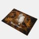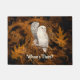 Este par de corujas brancas de neve faz a pergunta "Quem está lá" na sua porta. São festivos para o Halloween em creme contra laranja e preto, mas são genéricos o suficiente para trabalhar durante toda a época da colheita. Estas corujas-vintage estão poleiradas contra as damascos cor de laranja e os restos fantasma das folhas do outono. Este design pode ajudar a colocar-vos no clima para folhas estaladiças, sidra quente picada, abóboras, ar mais fresco e estação de outono. As corujas são de uma ilustração botânica antiga no dominio público. O texto diz "Quem está lá", mas você pode personalizá-lo, por exemplo, se preferir seu nome ou um slogan diferente.