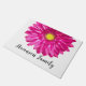 Este tapete de boas-vindas tem uma grande margarida de gerbera rosa e um nome de família editável de design. Adicione seu nome ou mensagem para receber convidados em sua casa. Edite o nome para personalizá-lo usando a ferramenta de edição na lista.