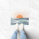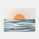 Abstrato ilustração do nascer do sol com o sol laranja e decoração de ondas marítimas azuis, brancas e turquesas