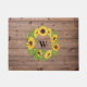 Uma coroa amarela vívida de girassóis rodeia a sua primeira. O fundo é madeira de celeiro rústica. Parte de uma coleção. Você pode personalizar facilmente o seu batmat usando a ferramenta de design do Zazzle. Faz um presente único.