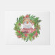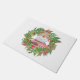 Esta design apresenta uma pintura aquosa de uma coroa tradicional para celebrar a época de Natal. No centro da coroa está um boneco de neve sorridente vestindo um suéter de Natal, chapéu e luvas; o boneco de neve tem uma cenoura para o nariz. Há groselhas vermelhas na folhagem verde que compõem a coroa circular. As bochechas do boneco de neve são rosadas e ele tem um grande sorriso, mostrando quão feliz ele está por celebrar o Natal.