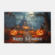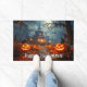 Este tapete de boas-vindas do Feliz Halloween apresenta um par de abóboras assustadoras brilhando no escuro. Sinta-se à vontade para ajustar todas as opções disponíveis, conforme desejar.