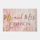 Um doormat Home bem-vindo bonito que caracteriza um design personalizado, este artigo indica um fundo floral cor-de-rosa com flores bonitas. O "Sr. e a Sra." são escritos a pia batismal cursive de Borgonha do inlarge com seu nome diretamente embaixo. Coloque sua ordem hoje!