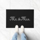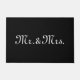 Sr. & Sra. preta e branca, texto personalizado elegante com script Doormat chic. Texto branco personalizável sobre fundo preto plano sólido.
