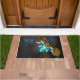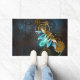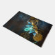 Barbeiro véu com asas transparentes azuis e lâmpada verde sobre fundo vestido, marrom, texturizado. Estilo Steampunk.