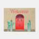 Este tapete de porta apresenta uma fotografia mista e arte digital a sudoeste design com portas duplas vermelhas com oposições a Kokopellis e saguaro cactus. Personalize o texto com um nome, remova o texto ou clique em personalizar para selecionar um estilo de tipo, tamanho e cor preferidos.