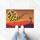 Morcegos negros voando para as melodias de Kokopelli flute. Decoração da casa do Rug Doormat do Halloween Kokopelli, Sudoeste Moon. Combinação de cores vívida do Halloween que você pode personalizar a mensagem de teste ou de boas-vindas. Decoração de Halloween. Culturas indígenas nativas americanas de Kokopelli. Atribuído a aliens antigos ou arte tribal e inspirado em desenhos de cavernas e rochas. Personalize as cores e estilos do tapete de porta nativo americano do Estilo Sudoeste. Ideia de presente de excelente do sudoeste temático Kokopelli tapete.