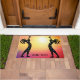 Deserto do Sudoeste Sunset Kokopelli Rug Doormat Combinação de coloração solar vívida que você pode personalizar as cores de fundo para combinar com a sua decoração. Culturas indígenas nativas americanas de Kokopelli. Atribuído a aliens antigos ou arte tribal e inspirado em desenhos de cavernas e rochas. Personalize as cores e estilos do tapete de porta nativo americano do Estilo Sudoeste. ideia de presente de excelente.