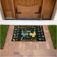 Esta porta tem um design de dala folk sueco no centro com flores clássicas de arte folk em cores de Suecia azul e amarelo. Na borda estão os mesmos cavalos, galos e porcos. Você pode fazer o padrão de fundo na porta menor ou maior. Personalize isso com sua própria saudação no topo e o nome da família na parte inferior.