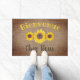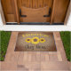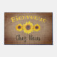 design de texto curvado com girassol trio - "Bienvenue chez nous" = Bem-vindo ao nosso lugar em francês.