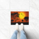 Linda arte digital Cena do pôr do sol africano com árvores, pássaros e estrelas.